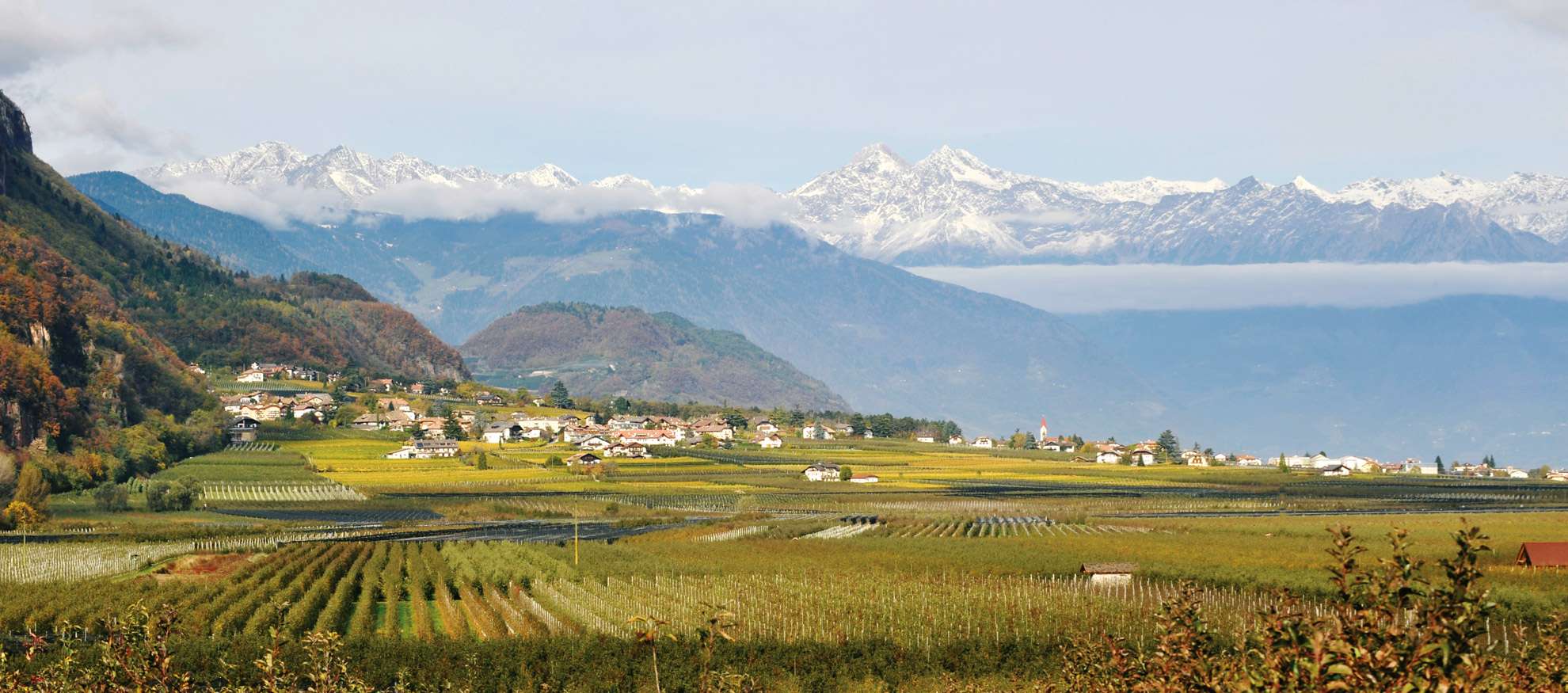 In Oltradige – come in pochi altri luoghi – nord e sud s’incontrano, con una perfetta simbiosi fra vegetazione alpina e mediterranea. Sulla riva orografica destra dell’Adige, a 285 metri sul livello del mare, riposa tranquillo il paese di Andriano.